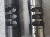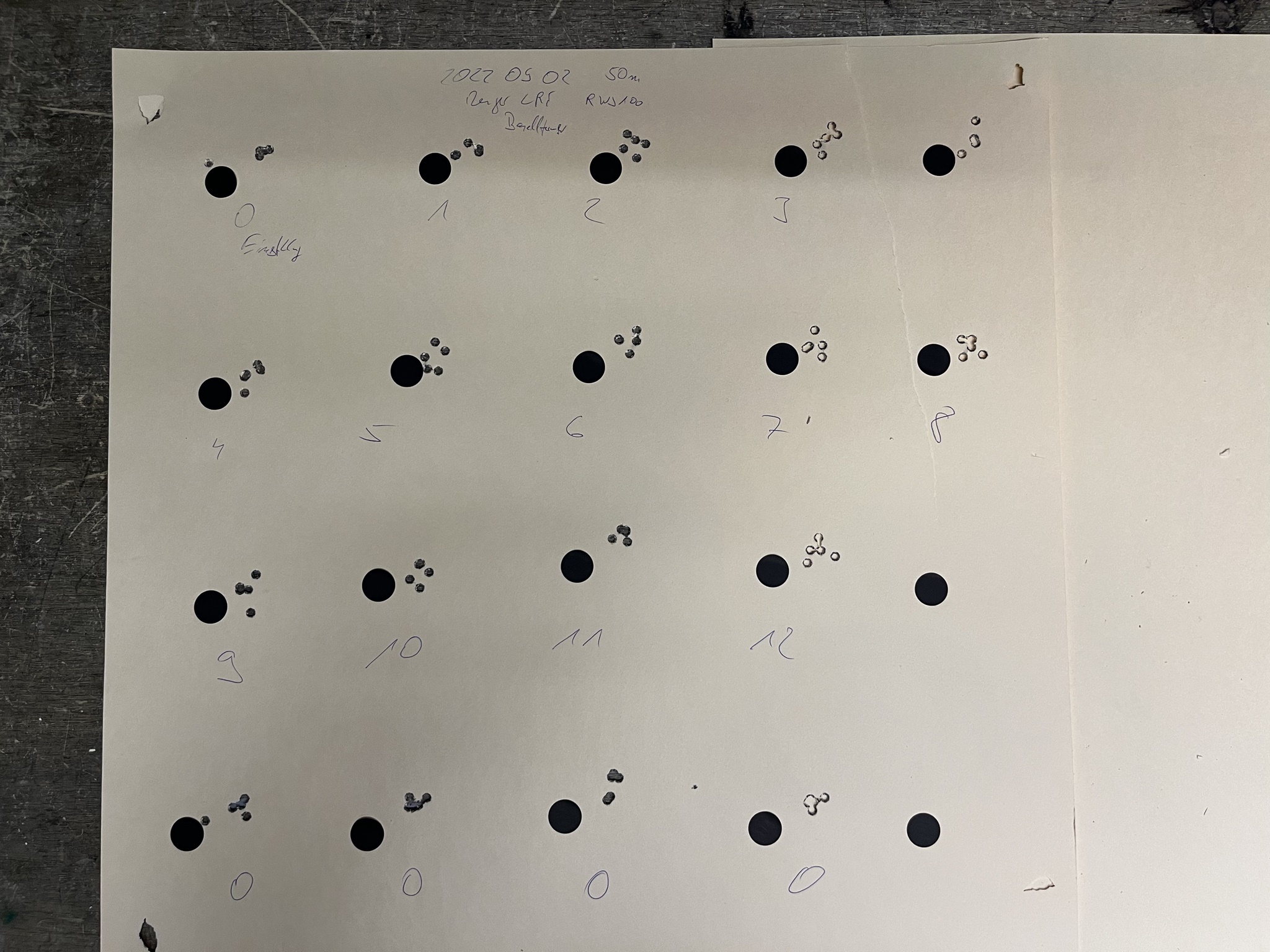 Um das Optimum aus der Waffe heraus zu holen, verwenden viele von uns einen Tuner von Christian. Dieser beeinflußt das Schwingungsverhalten deines Gewehrlauf und damit steigerst du die Präzision. Aber der Tuner kann eines nicht: Aus Scheiße Gold machen! Wenn du eine Patrone hast die stark streut, bekommst du die mit dem Tuner nicht auf Erfolgskurs getrimmt. Aber eine sehr gut schießende Patrone, bekommst du dann noch viel besser. An den Beispielbilder unten sieht man wie die Streukreise sich verändern. Zum Einschießen den Tuner ganz nach unten drehen, festziehen. 5 Schuss machen und den Tuner um eine volle Umdrehung nach oben aufdrehen. Wieder 5 Schuss und so weiter uns so fort. Die Anzahl der Umdrehungen haben wir mal auf die Scheibe geschrieben. Letztendlich konnten wir auf 50m einen Streukreis von 10mm auf 7mm reduzieren. Hört sich nicht viel an, aber auf 300m ist das dann schon eine ganze Menge Fehlerpotential was du ausschließen kannst.